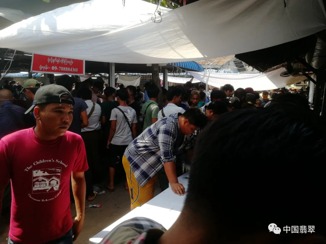 皎湾市场最让人记忆深刻的地方首先一定是它的布局,这里布局上最大的特点就是狭窄和拥挤,整个市场的面积大概也就一座足球场那么大,每当开市时门口永远都被摩托车堵得水泄不通,而市场内部则是由一条条三米左右宽的泥土道路交织而成的,前后出口一共只有四个,这样一个布局很难让人将这里和一个每日人流量过万的市场联系起来。 这里早上五点开市,开市后就会有缅商带着毛料和片料进入市场开始售卖,在上午九点至十一点这个时段市场中的人流将会达到顶峰。在这里售卖的翡翠货品都是由缅商们从翡翠原矿场口带回来的原石开解后切割加工而来的,而这些原石从场口运回到曼德勒的过程远不是从A点到B点那么简单,其中不知暗藏多少风险又或是流了多少鲜血。在原石从场口运回曼德勒的路途中缅商可能会遇到劫匪或者地方武装,这些势力都会抢夺缅商手中的翡翠资源,杀人越货更是家常便饭。针对这种情况,一些有钱有势的缅商在去场口购买原石时都会提前花钱聘请雇佣兵保护自己和货物的安全,而那些没钱没势的缅商就只能拿自己的命去冒险、去赌博,祈祷自己能幸运地避开劫匪和地方武装将翡翠原石安全带回。